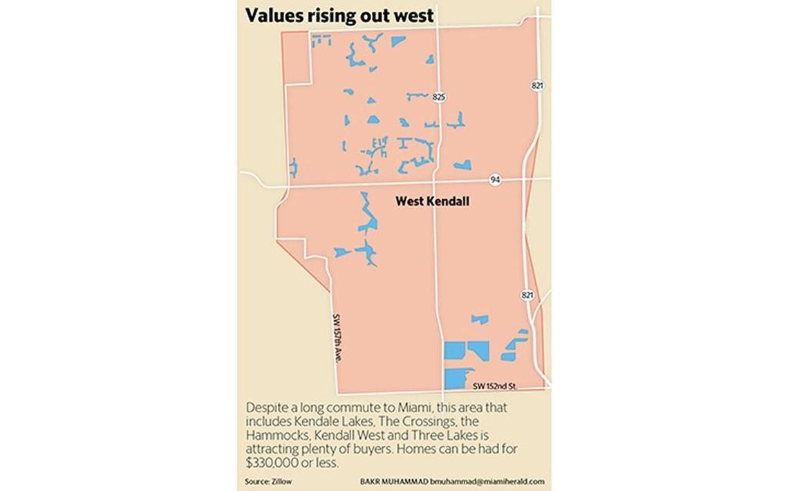 Median single-family home values: Median single-family home values for ZIP codes in West Kendall range from the high $200,000s to the low $400,000s. The neighborhoods known as the Hammocks and the Crossings have the highest rates of growth at about 8 percent, on par with the county-wide average.