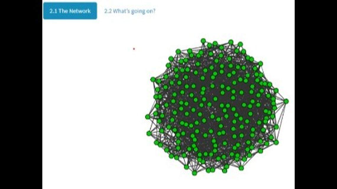 Each person is represented by a green dot, and connections are shown with gray lines extending from one dot to the next, the study says. Before social distancing it was nearly impossible to decipher all the connections from person to person, the diagram shows.