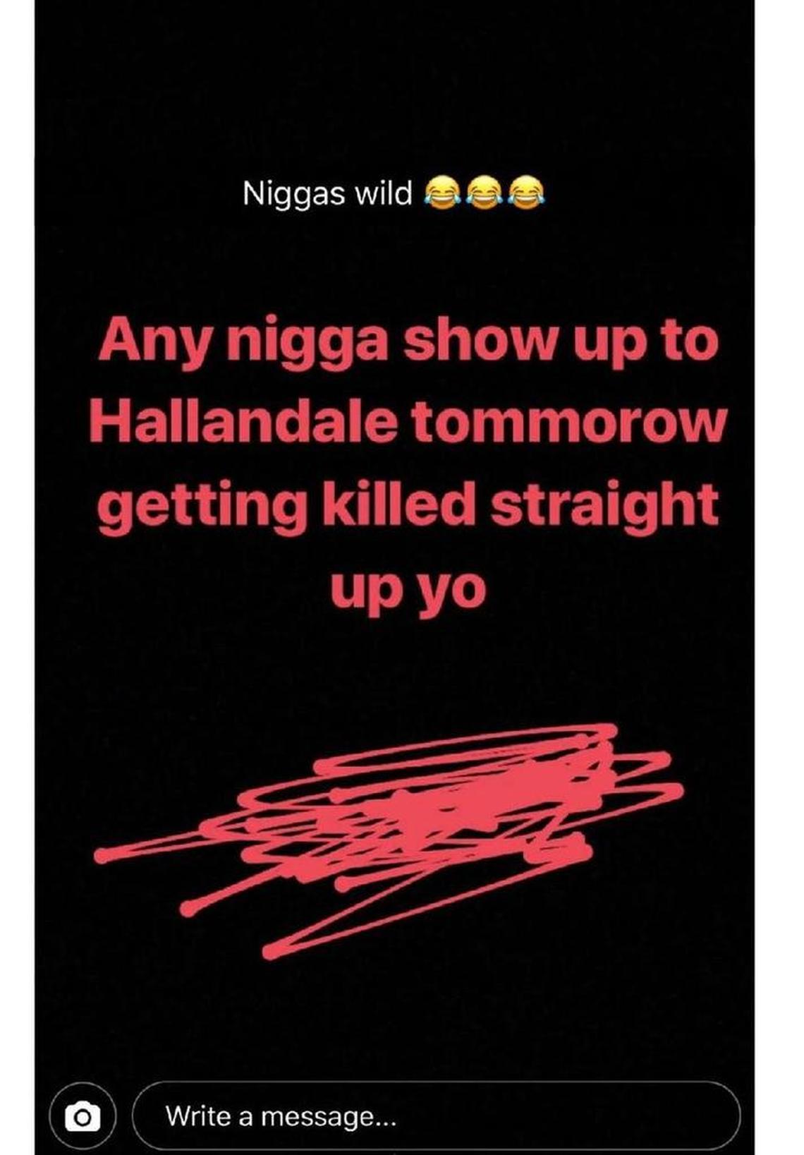 This is a screen grab of the Instagram post, as forwarded to The Herald by a parent: