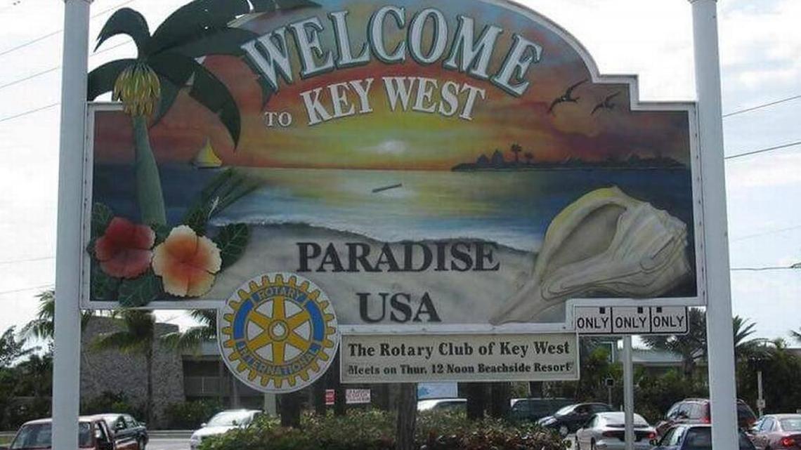 The missing “Welcome to Key West” sign — iconic signage that pronounced Key West as Paradise U.S.A.— was found 300 miles away early Thursday in Fort Myers Beach. (In nautical distance it’s about 110 miles).