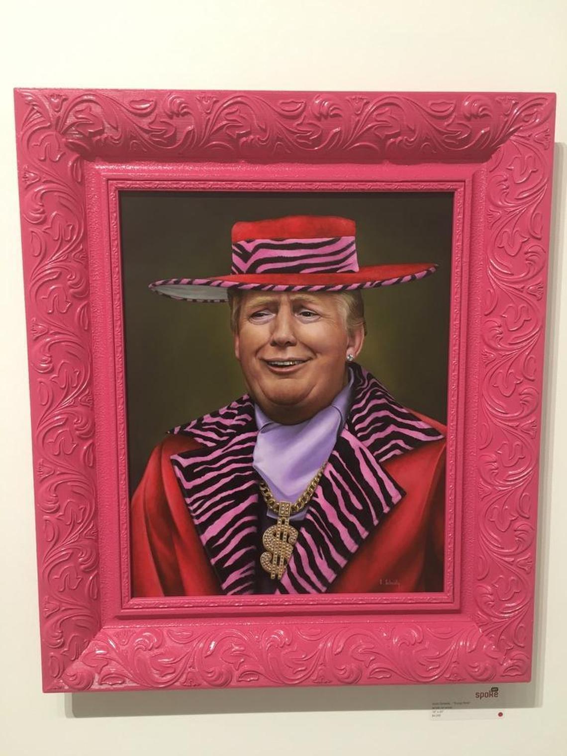 Both artworks, done by Orlando-based artist Scott Scheidly, were listed at $4,000 each and sold to a single collector. They are part of a series by Scheidly, who has painted satirical portraits of roughly 50 politicians and pop culture figures, including former President Barack Obama, Adolf Hitler and Queen Elizabeth II.