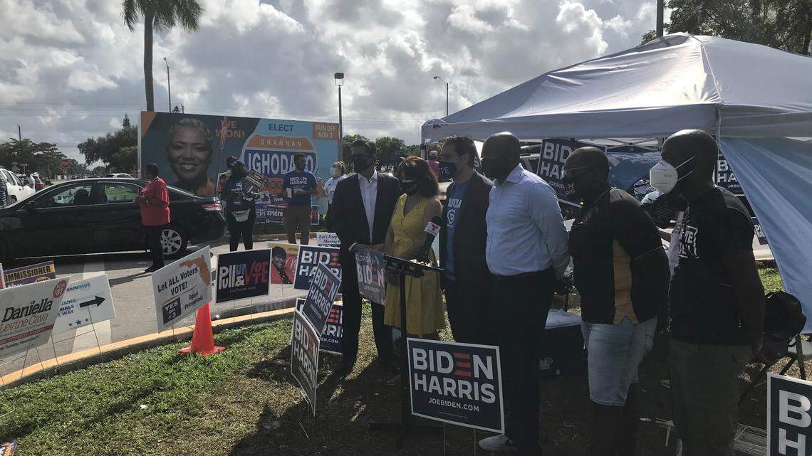“Today, Donald Trump is bringing a massive super-spreader event to Dade County. He has the gall to do that when he has no plan for COVID,” Miami-Dade Democratic Party Chairman Steve Simeonidis said during a press conference in front of the early voting center at the North Dade Regional Library. “He is the reason why so many people in this country have suffered due to the pandemic.”