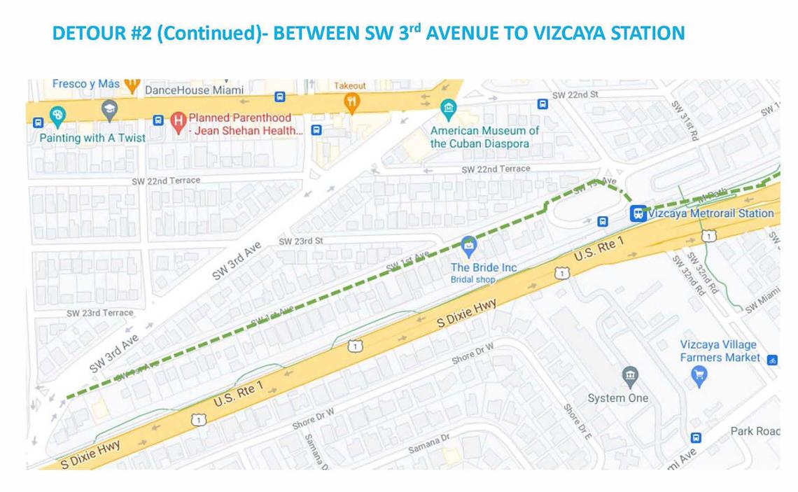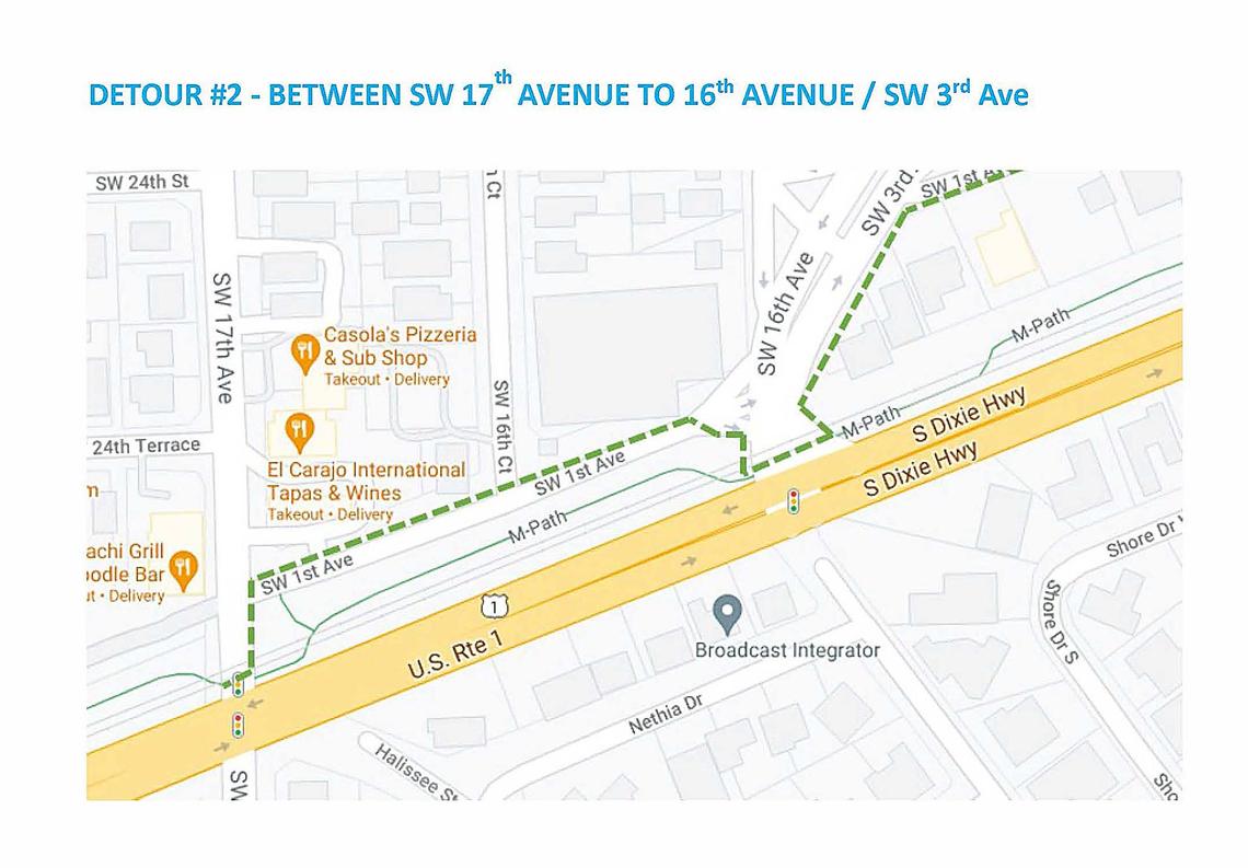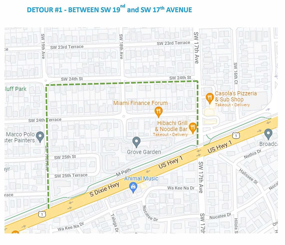 That’s where crews have begun installing barricades along the existing path to block the corridor off for construction. Signs will direct M-Path users to detours. The stretch from that intersection to the Vizcaya Metro station will be fully shut down for construction by the end of the month, the county said.