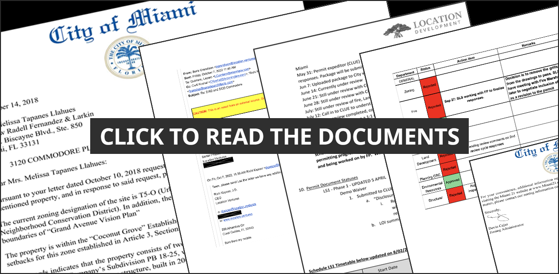 Suarez has repeatedly denied involvement in the Coconut Grove project’s permitting, despite internal Location Ventures records provided to investors that said he would help push the zoning process along. Suarez’s spokeswoman said he was instead paid to recruit potential investors for Kapoor’s projects and did not lobby for the developer.