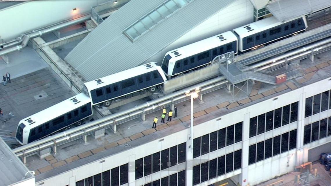 “One car went onto the roof of Concourse D, and the other car is off the rail,” Miami-Dade Aviation spokeswoman Suzy Trutie said in an email update. By the end of the day, the cars had been removed, but the county still had to finish inspecting the tracks before Skytrain service could resume.