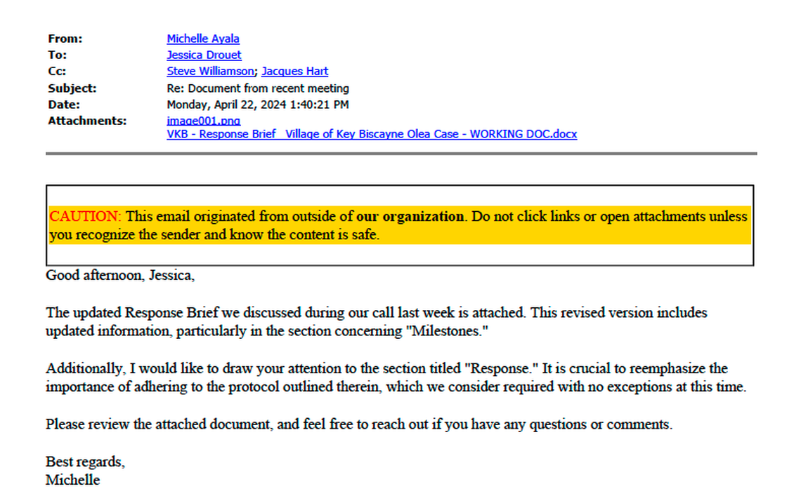 One document obtained by the Herald through a public records request outlines Roar’s recommendation that Key Biscayne establish a “standardized response procedure” and directs Williamson to designate a spokesperson to deal with media and tell all other staff to redirect questions to that person.