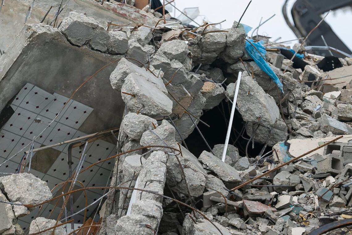 The 30-foot pile from the controlled demolition obscured a persistent search-and-rescue operation closer to the beach, where cranes and other heavy machinery loomed over crews who have faced fires, squalls, and heat over 13 excruciating days since the collapse.