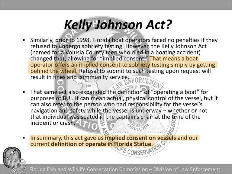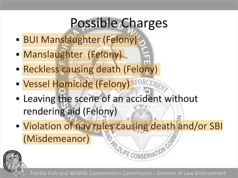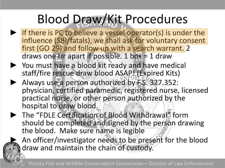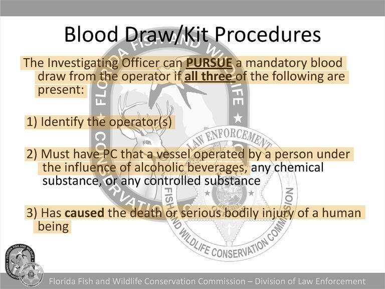 Those records show that FWC officers are trained to pursue sobriety tests of captains in crashes involving death or severe injury, and to reach out to on-call prosecutors and judges to secure warrants for those who do not voluntarily comply.