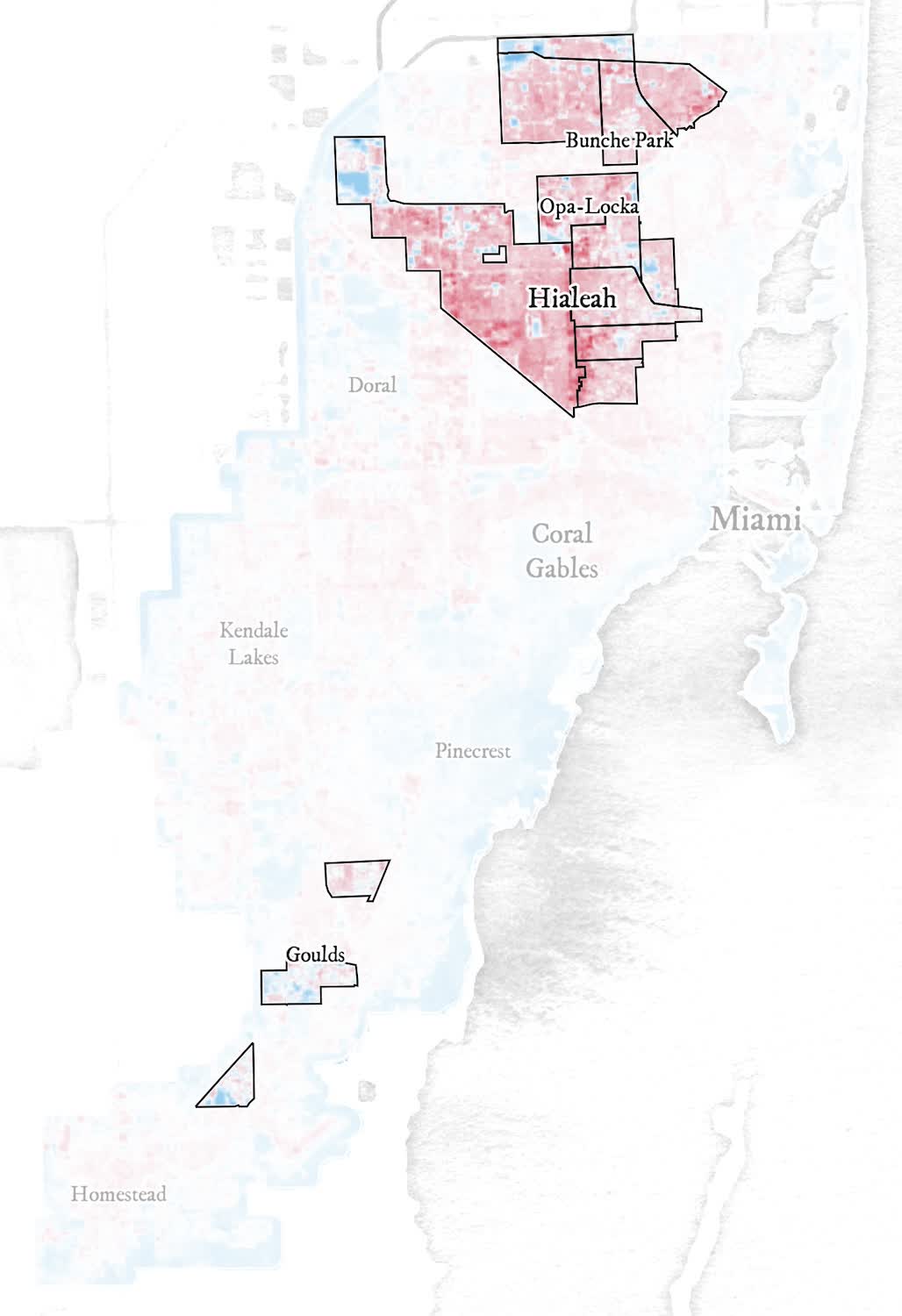 Hialeah saw its canopy cover fall between 2016 and 2020. And it wasn’t alone among lower-income, high-minority enclaves. Opa-locka, overwhelmingly Black and one of the poorest cities in Miami-Dade, also fell significantly.