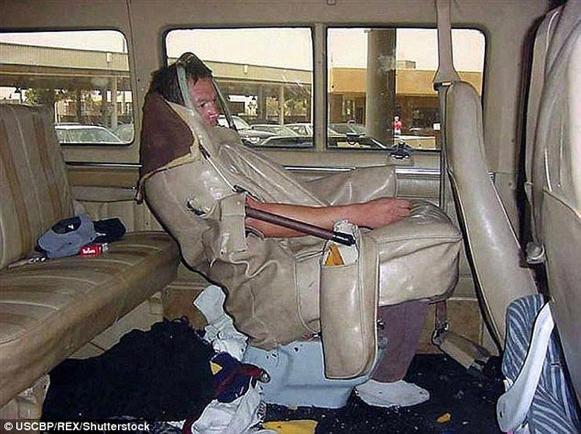 Some undocumented immigrants have crossed into the United States crowded into containers hauled by tractor trailers or concealed in the trunks of cars. At least one foreign national hid in the upholstery of a seat in a van. A picture from the Border Patrol showed how the man appeared to be part of the seat's gray plastic cover.