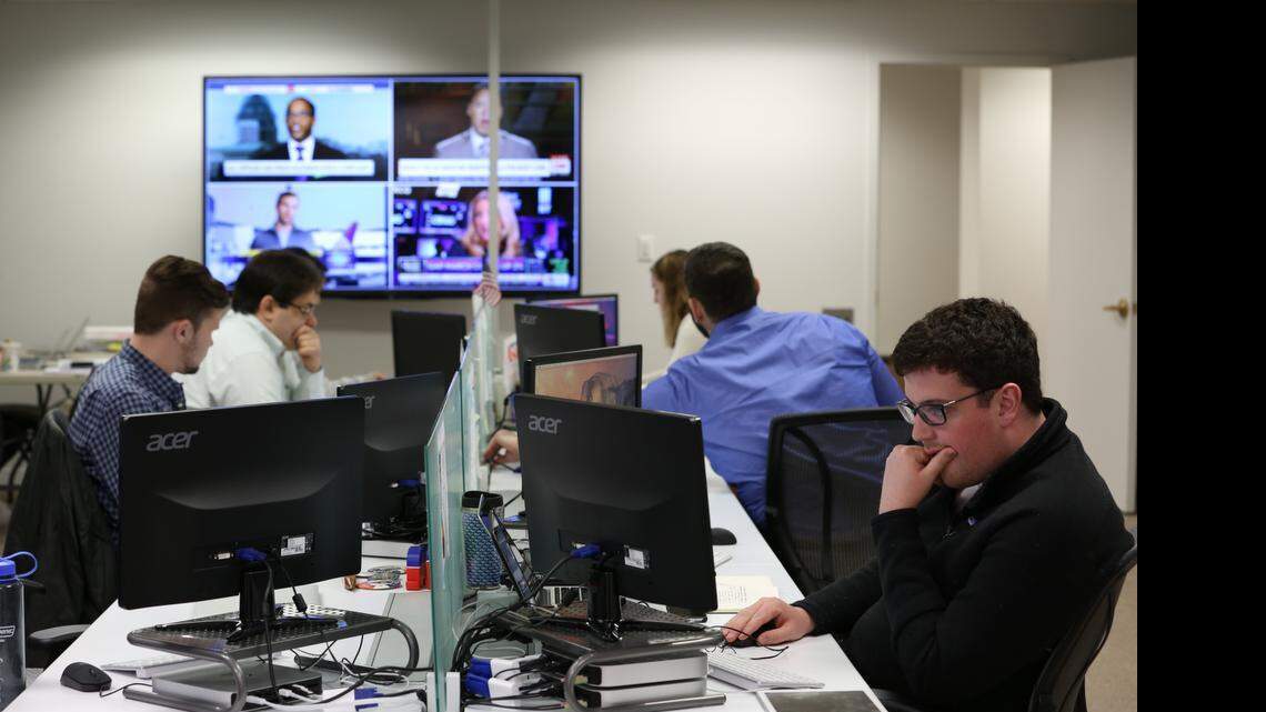 “We’re the eyes and ears,” said Francis Brennan, 25, war room director at the conservative political action committee America Rising. “We try to just pump out as many facts as we can. Everything we do is fact-based. It’s not scrutinized or opinion-based. It’s all facts. We have to prove what we are saying. We can’t just say things.”
