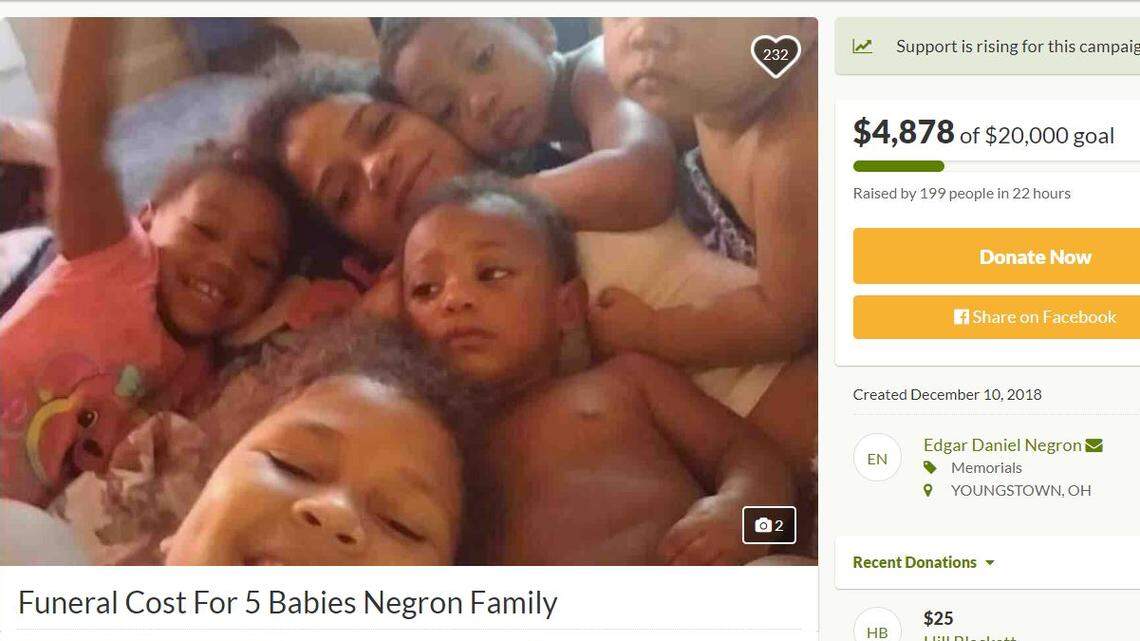 The Mahoning County Coroner’s Office confirmed to WFMJ that five children died in the fire: Aleysha Rosario (9), Charles Gunn (3), Ly’Asia Gunn (2) and Brianna and Arianna Negron (1).
