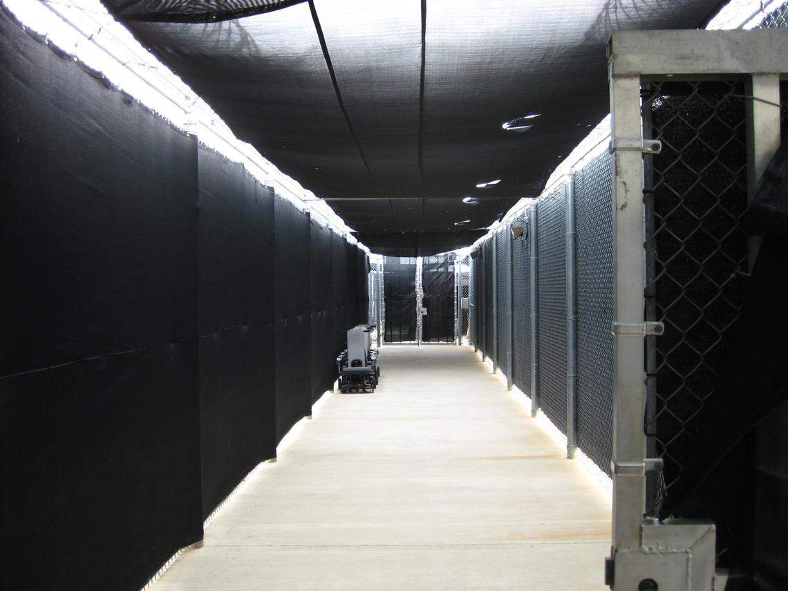 Pentagon workers have installed a blue curtain inside the spectators gallery to separate victims, chosen by lottery, from the other observers at the back of the courtroom. See a 2011 Pentagon video tour of the courtroom. Construction of the compound began in the summer of 2007 after a C-130 Hercules cargo plane landed on the McCalla field, the current site of Camp Justice, and delivered three trailers specially equipped for legal staff to handle Top Secret material. Called “Razors,” they look like shipping containers. More materials came by barge, and ground was broken for the court itself on Sept. 11, 2007. In early 2018 the Pentagon disclosed that the trial judiciary had about 730 hours of audio recordings of war court hearings, and that the U.S. military considered even audio of open-court proceedings to be classified. An up to $19 million expansion is underway. The contractor also helped rebuild the World Trade Center after 9/11.