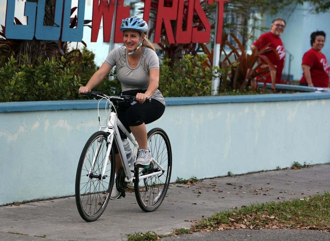 Yesenia Hoyas, 41, rode her bike to the Open Bible Church in Miami to cast her vote. In addition to getting some exercise, she said it was important to her to vote this year.