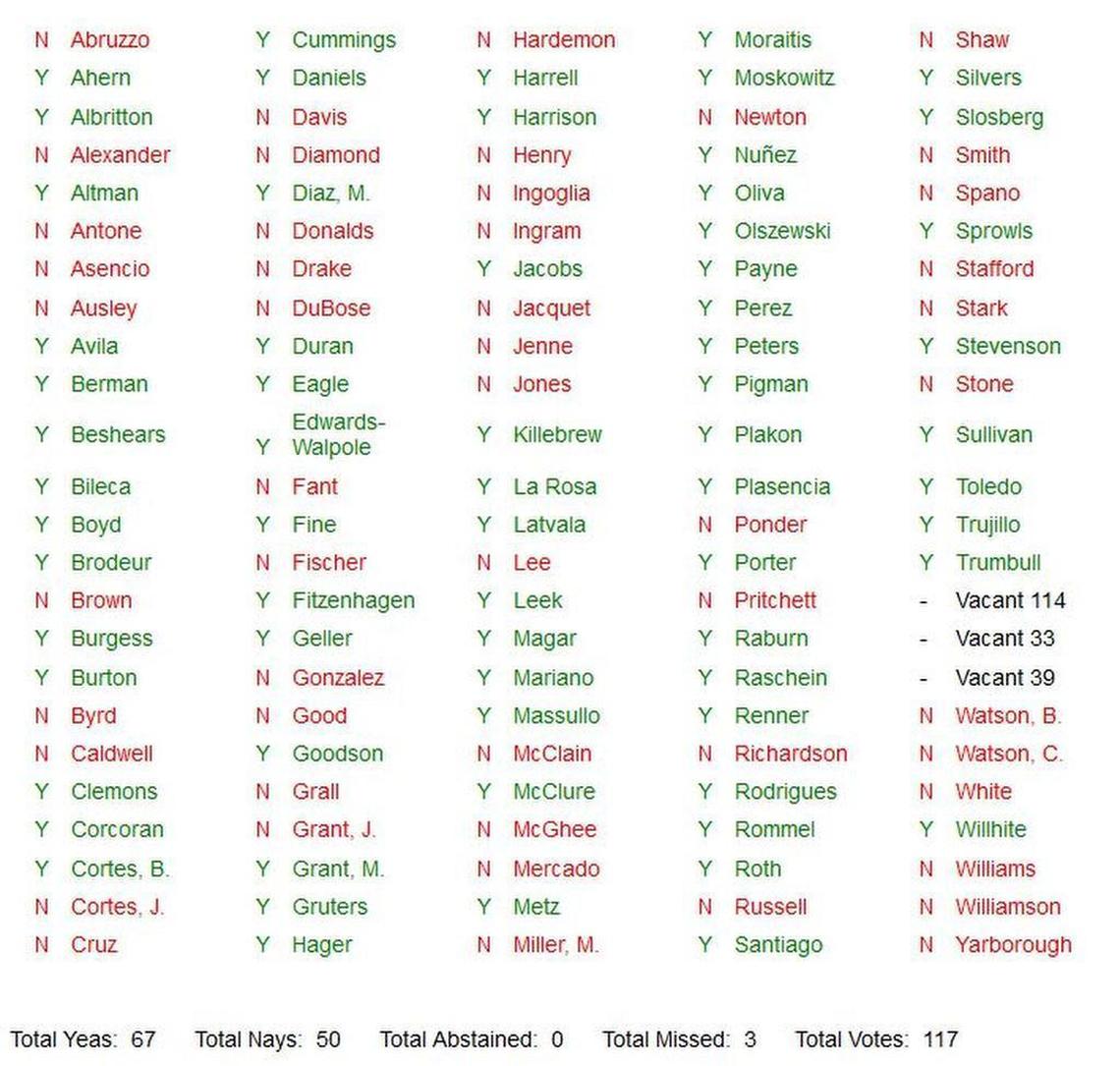 The vote by a deeply divided House was 67-50 after a debate that lasted nearly eight hours. . Once the bill passed, lawmakers saluted and waved to the visitors’ gallery and Andy Pollack, whose daughter Meadow died in the massacre.