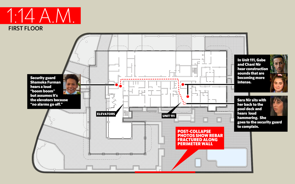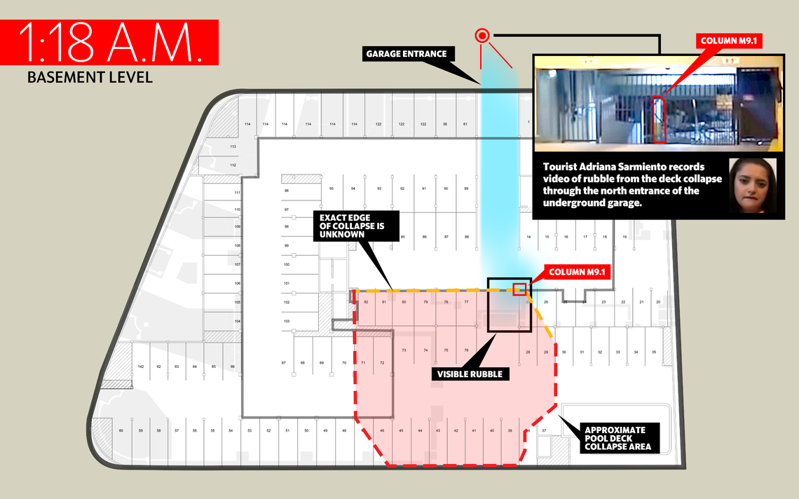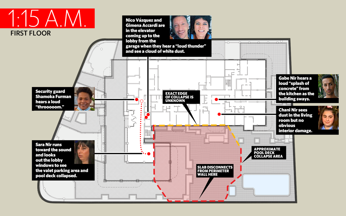 Their stories call into question prior theories built on the assumption that the collapse began when concrete — either slab or column — began to crumble on the northern side of the pool deck.