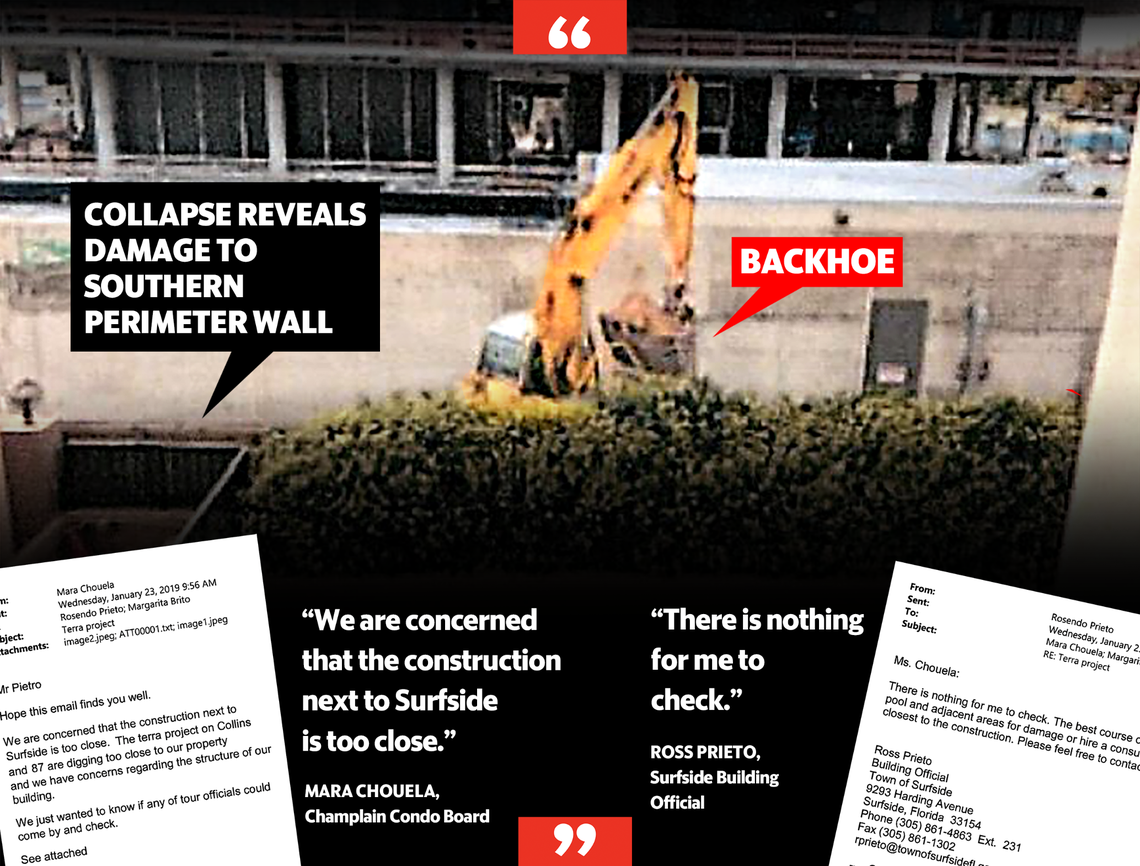 The previous year, condo board member Mara Chouela sent an email to the town of Surfside complaining that developers of the project next door in Miami Beach were “digging too close to our property” causing residents to have “concerns regarding the structure of our building.”