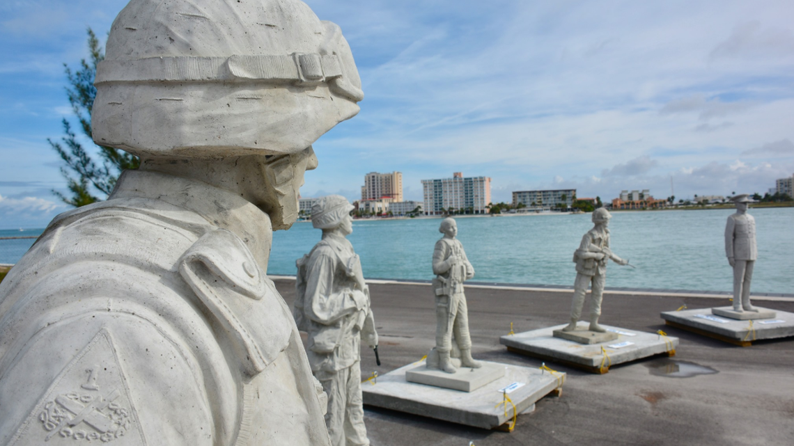 The underwater dive memorial, called “Circle of Heroes,” will eventually feature 24 concrete statues representing the men and women in the U.S. Air Force, Army, Coast Guard, Marines and Navy, according to John David White, director of Brighter Future Florida. That’s former U.S. Rep. David Jolly’s nonprofit group, which is in charge of the project.