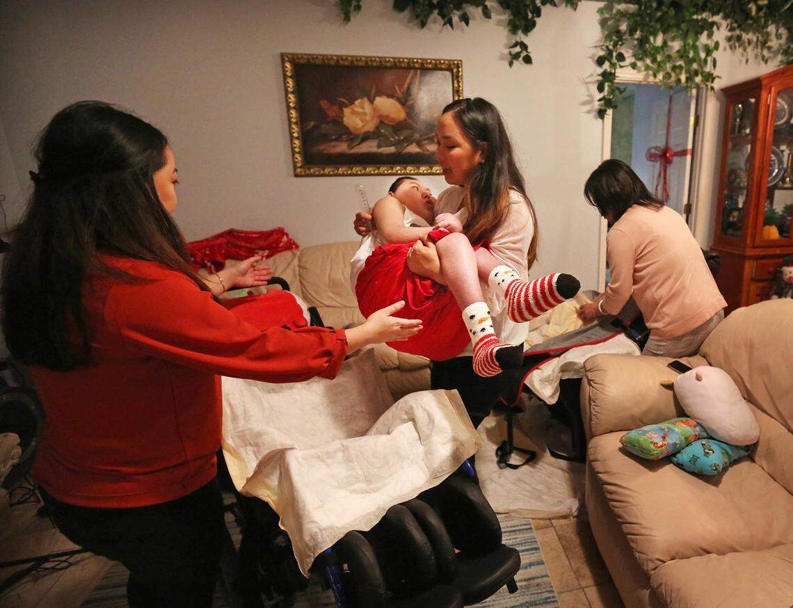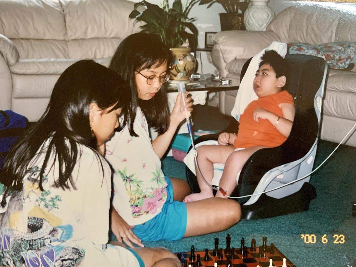 Jennifer and Jessica Pham, 6 and 7 when Justin was born, had to grow up fast to help meet the needs of their brother. He would spend the vast majority of his time flat on his back, and he had to be properly hydrated and turned regularly to prevent pressure sores. He became the focus of the family’s life.