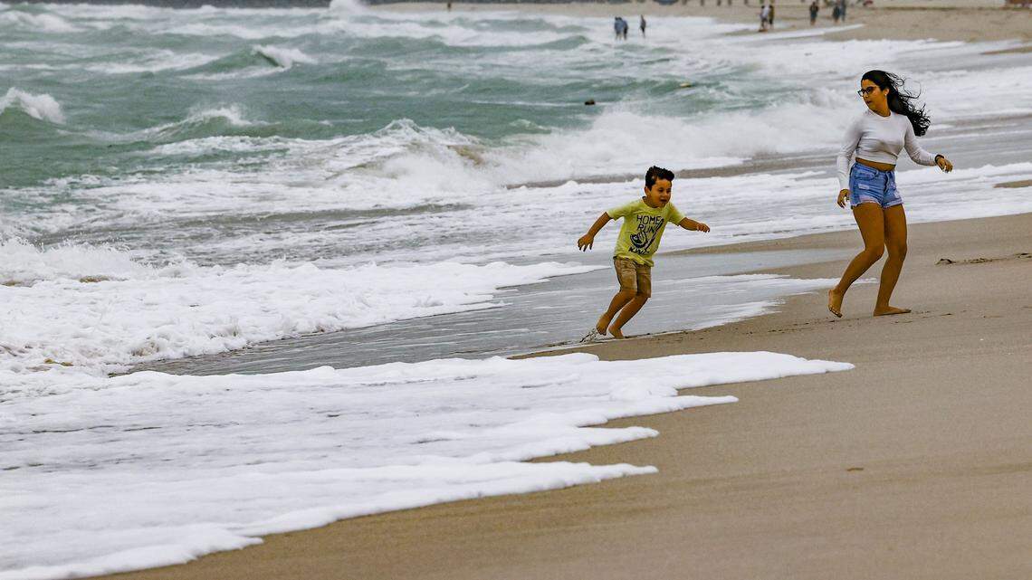 ▪ Surf: There is an extreme risk of high surf along Palm Beach and Broward beaches, and an elevated risk for Miami-Dade with large breaking waves of 9 to 14 feet in the surf zone. A high-surf advisory is in effect until 7 a.m. Sunday.