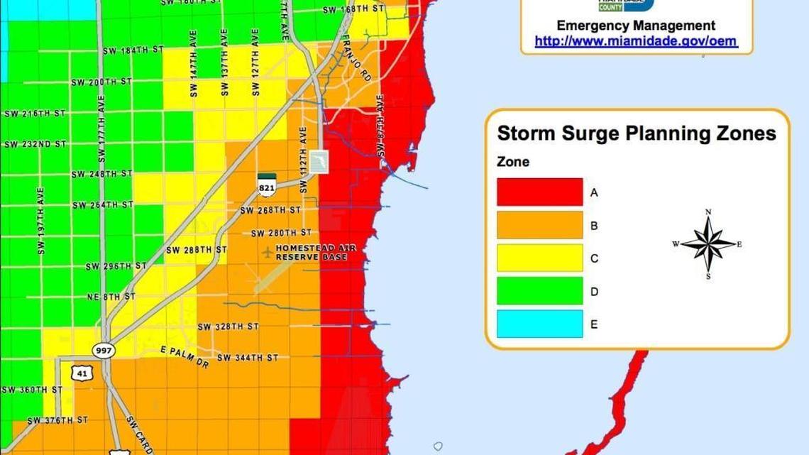 The A zone covers much of Coastal Miami-Dade and the B zone covers Miami Beach. An Gimenez spokesman said evacuation decisions could be made Wednesday morning.