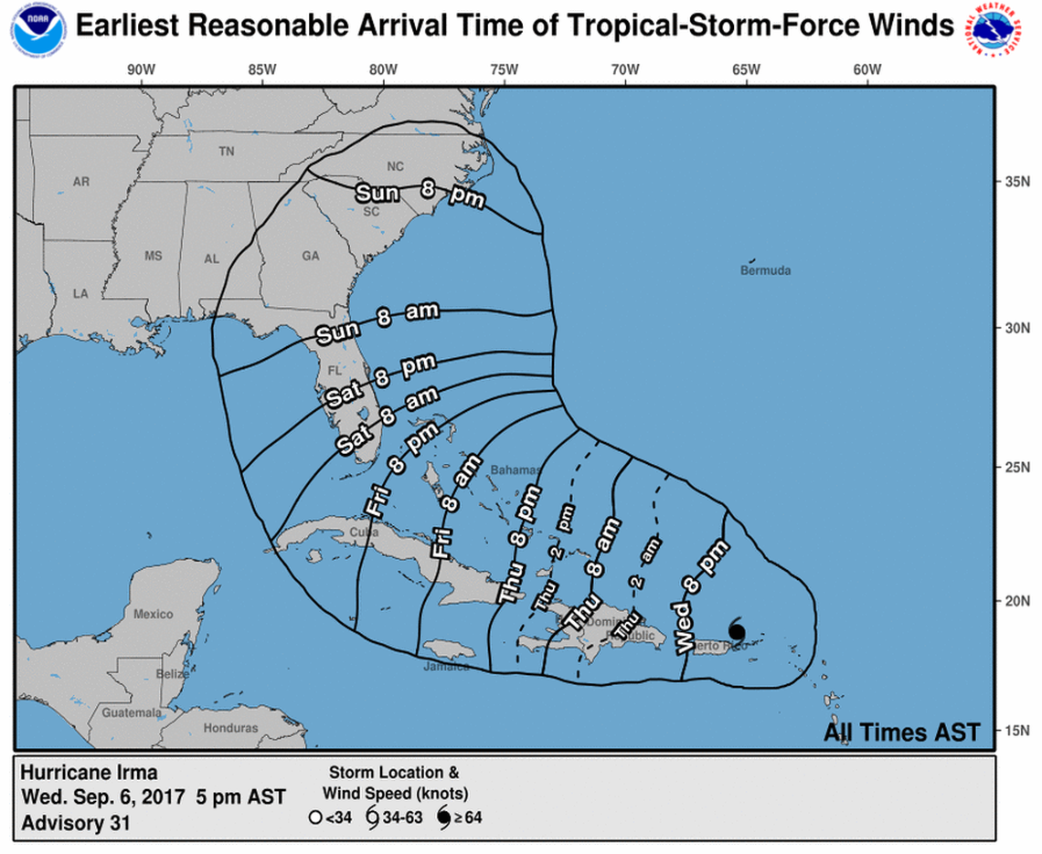 Hurricane conditions are expected to reach the Dominican Republic and Haiti early Thursday before Irma nears the Turks and Caicos and southeastern Bahamas later in the day.