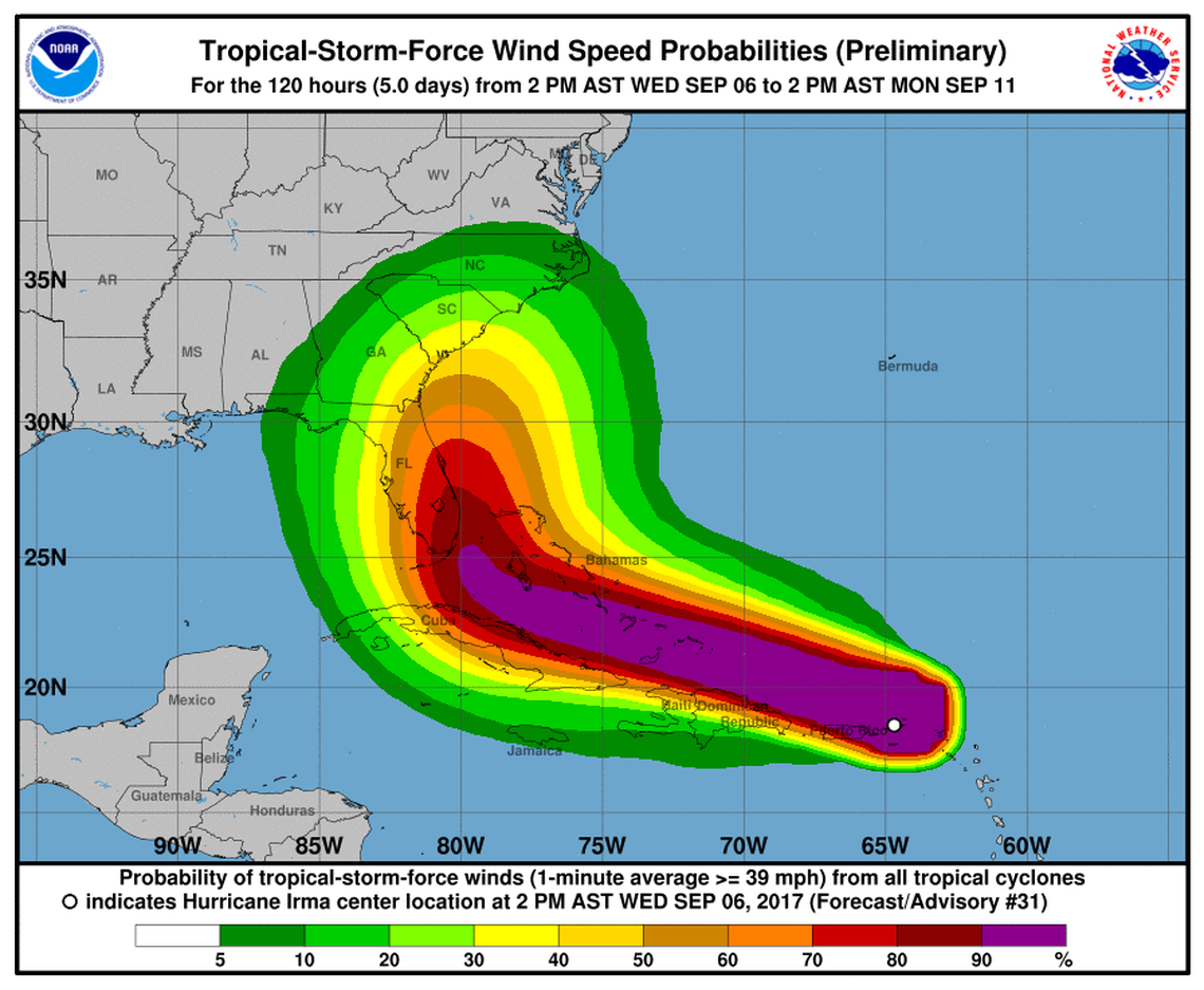 In the latest update, National Hurricane Center forecasters said they were confident Irma would continue on its west-northwest track over the next two to three days. As it nears South Florida and the Keys, it’s expected to make a sharp turn to the north by the weekend, steered by a low-pressure trough moving across the U.S. But where, and how fast, that turn occurs remains unclear, leaving South Florida to scramble in the face of an uncertain threat.
