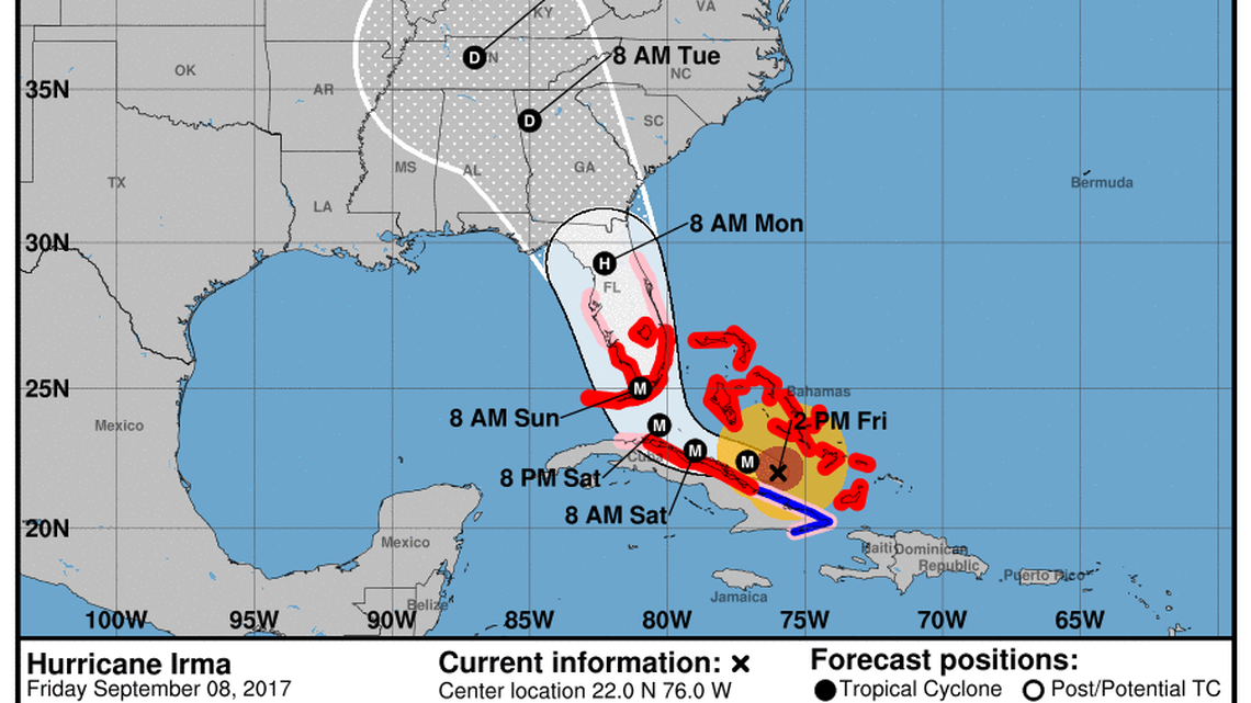 This story was originally published September 8, 2017 at 7:49 AM with the headline "Latest Irma track shifts west with hurricane watch widened."