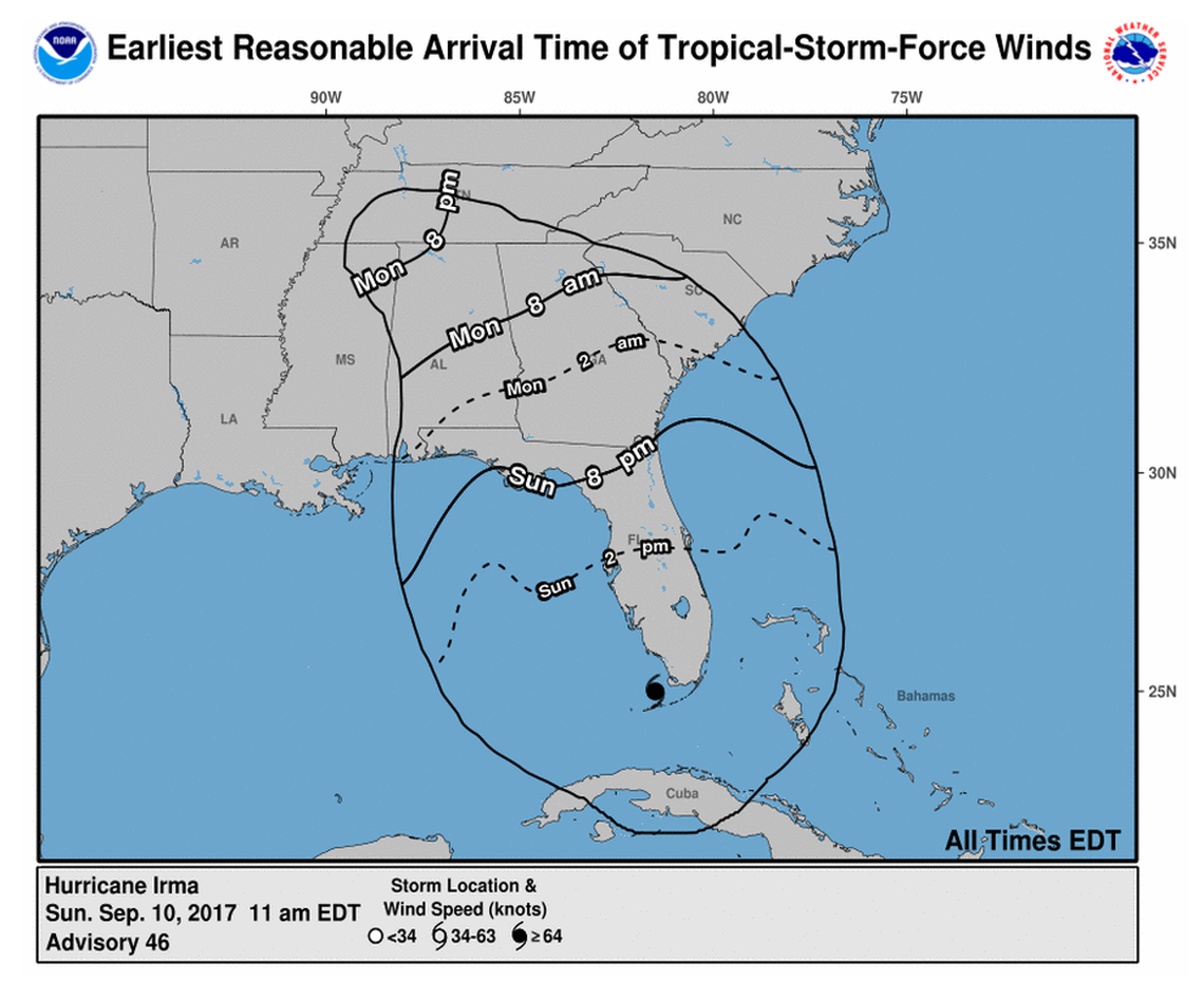In Miami-Dade and Broward, DeMaria said that once Irma’s eye goes north of Miami-Dade, the winds will turn to the southwest and eventually subside.