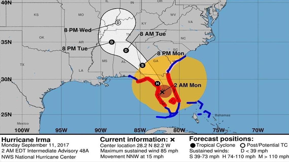 Hurricane Irma takes aim at Tampa, should leave Florida Monday as tropical storm