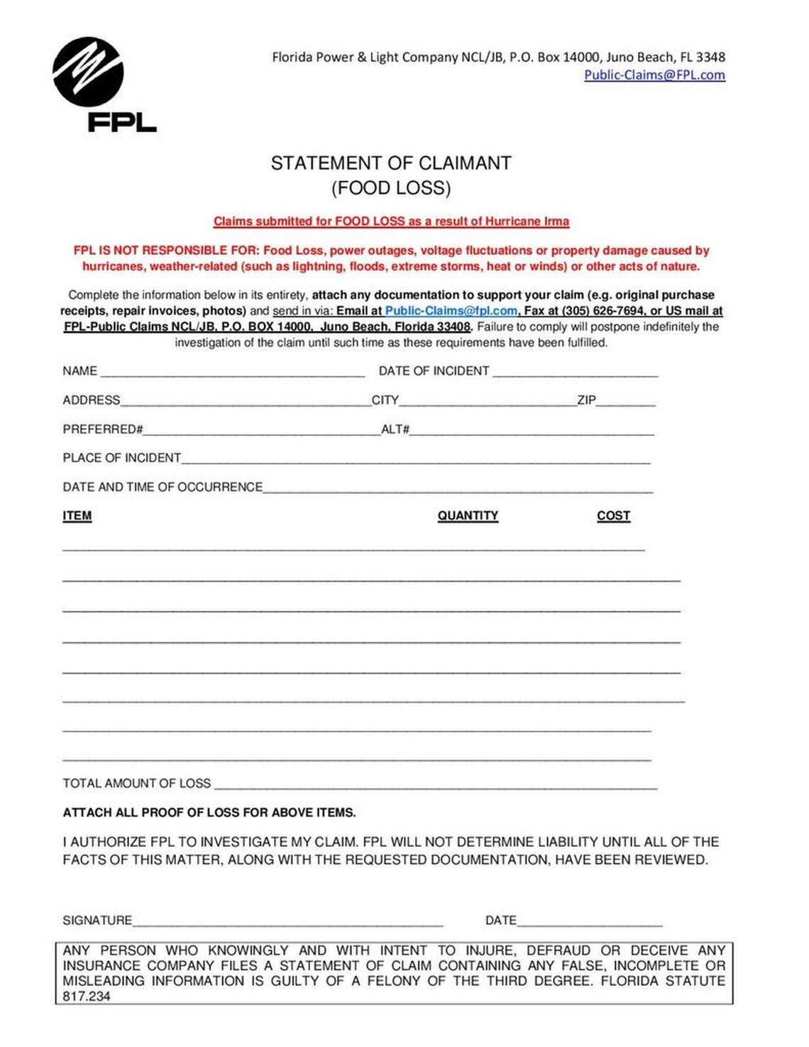 Here’s the deal with that FPL food loss claim form