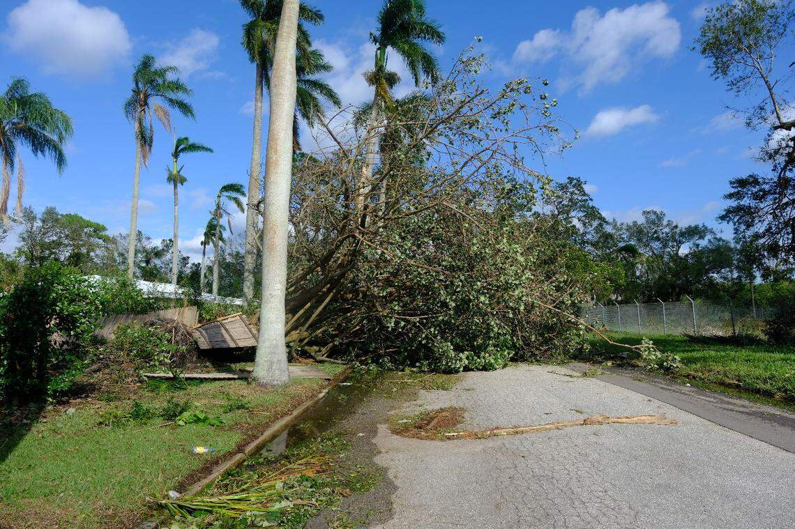 Damage and debris in front of homes in Charlotte County near Manasota Key on Thursday, Oct. 10, 2024, the morning after Hurricane Milton hit the area and two weeks after Hurricane Helene struck the area. Al Diaz / Miami Herald Staff adiaz@miamiherald.com