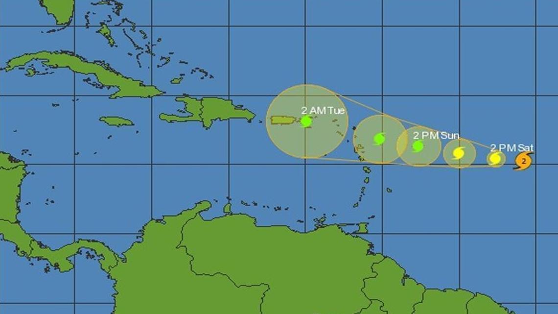 National Hurricane Center forecasters expect Danny will weaken over the weekend and arrive in the Lesser Antilles on Monday as a tropical storm. Forecast tracks show Danny continuing to weaken by the time it reaches Puerto Rico on Tuesday, and Haiti and the Dominican Republic by Wednesday.