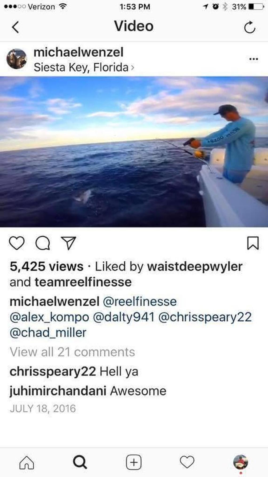 The boat driver is Michael Wenzel, who has an ugly history of harassing wildlife and posting the images on Instagram. One photo features the Manatee County man and some pals roughing up a white pelican. (Wildlife agents investigated, but didn’t charge anyone).