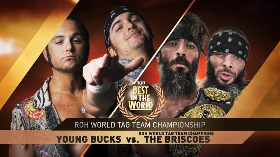 ROH World Tag Team Championship Match: THE BRISCOES (champs Jay and Mark Briscoe) vs. THE YOUNG BUCKS (Matt and Nick Jackson).