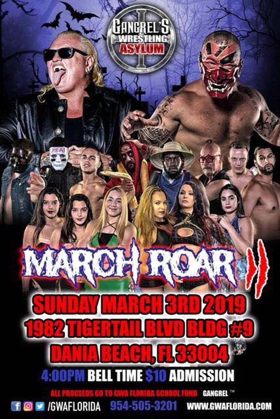 Gangrel’s Wrestling Asylum is Sunday at Gangrel’s Wrestling Asylum in Dania Beach.