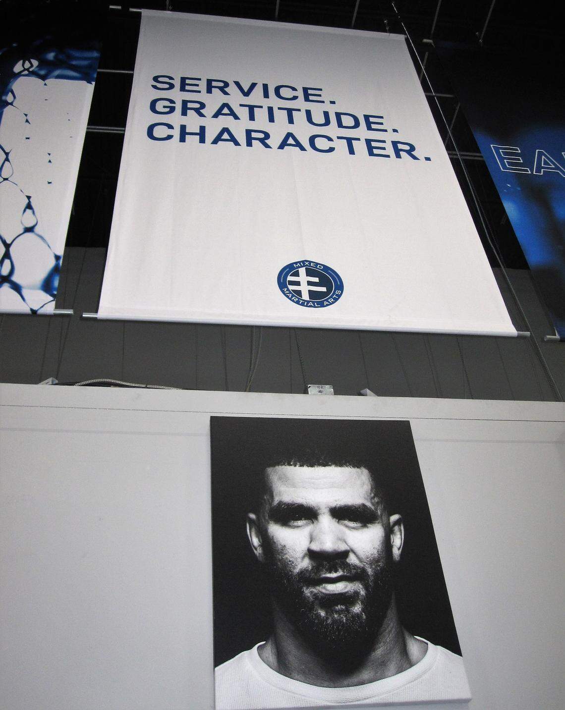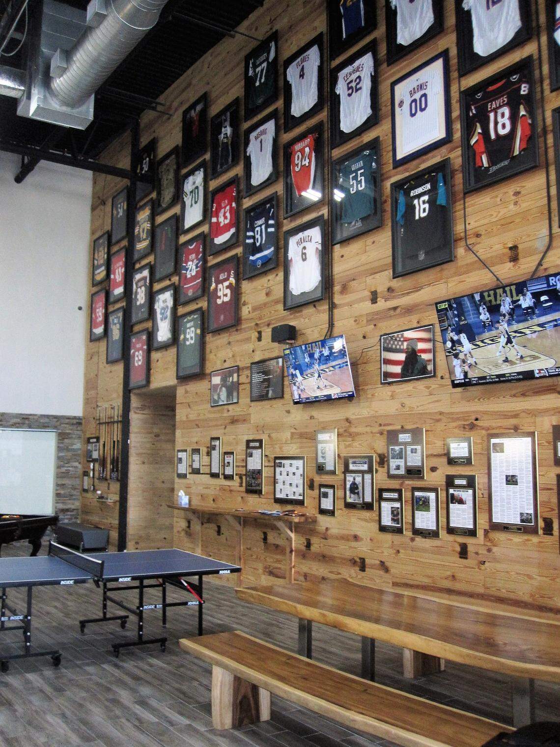 The spacious complex houses a large MMA training center, clinic and rehab rooms, strength & conditioning area, offices, food and beverage lounge with pool table, ping pong, merch and picnic bench and stool style seating.