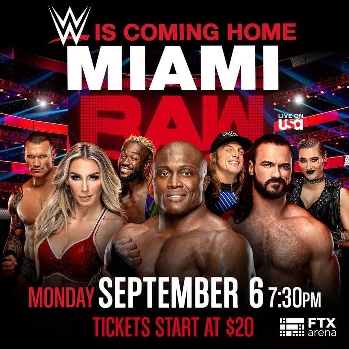 Raw currently features WWE Champion The All Mighty Bobby Lashley with Miami’s own MVP, Raw Women’s Champ The Queen Charlotte Flair, U.S. Champ Damian Priest, Raw Tag Team Champs RKBro (Randy Orton and Matt Riddle), WWE 24-7 Champ Reginald, R-Truth, Nikki A.S.H., Drew McIntyre, Sheamus, Alexa Bliss, A.J. Styles, The Giant Omos, The Miz, John Morrison, Asuka, Jinder Mahal, Elias, The Viking Raiders (Erik and Ivar), Nia Jax, Shayna Baszler, Mustafa Ali, Mansoor, Karrion Kross, Jeff Hardy, Keith Lee, Eva Marie, Doudrop, Ricochet, Tozawa, Lince Dorado, Dana Brooke, The New Day (Kofi Kingston and Xavier Woods), Ripley and more.