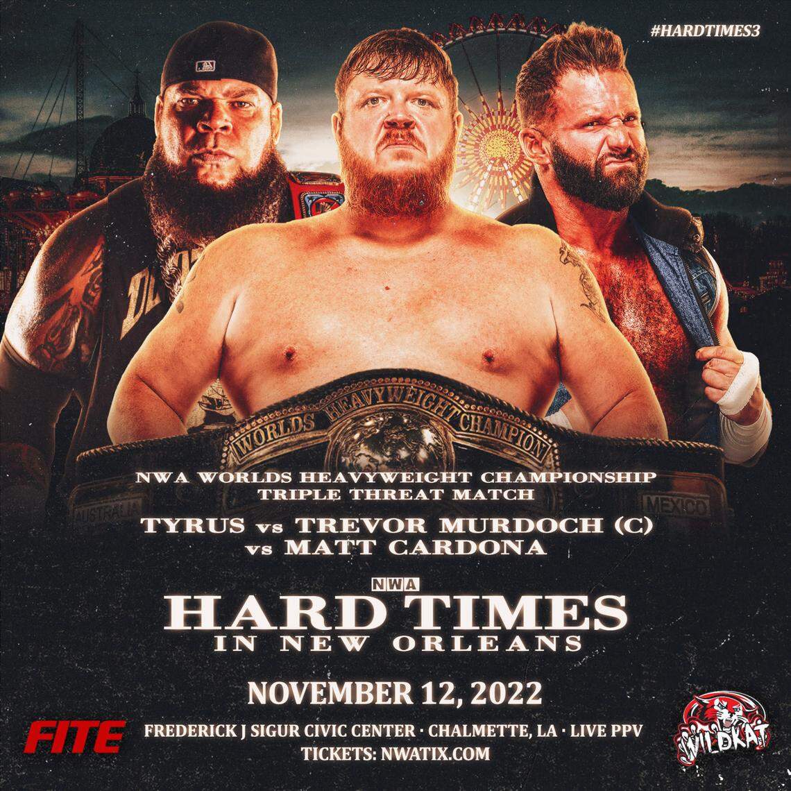 Hard Times 3 will occur on Saturday, Nov. 12 via FITE TV from the Frederick J. Sigur Civic Center in Chalmette, Louisiana.