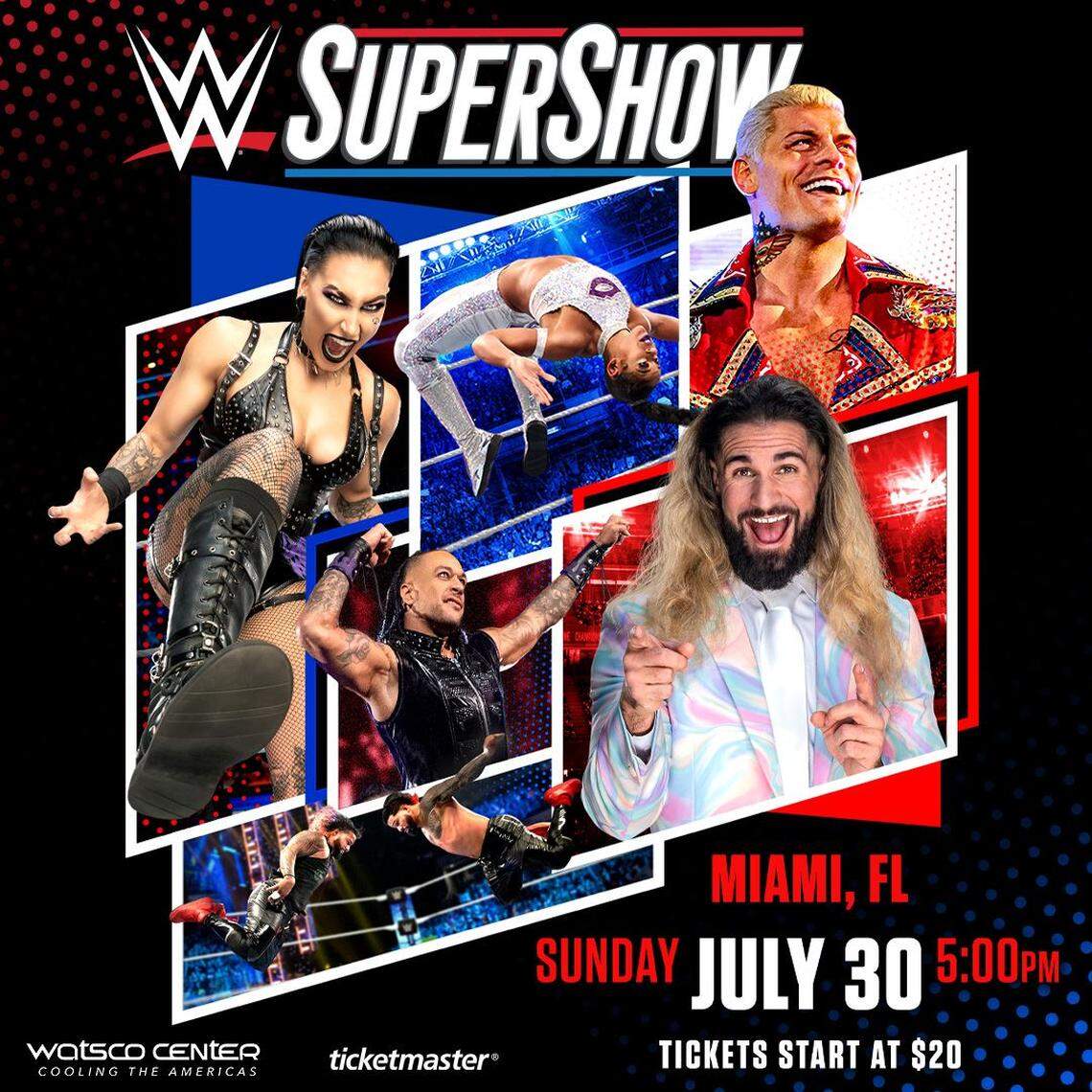 WWE makes its main roster Watsco Center debut at the University of Miami in Coral Gables on Sunday, July 30. NOTE: Bell time 5 p.m.