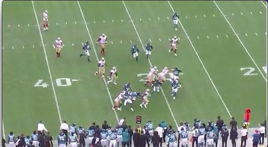 In a Week 11 game against the Jacksonville Jaguars, the 49ers use an outside toss play but with Samuel as the ball-carrier.